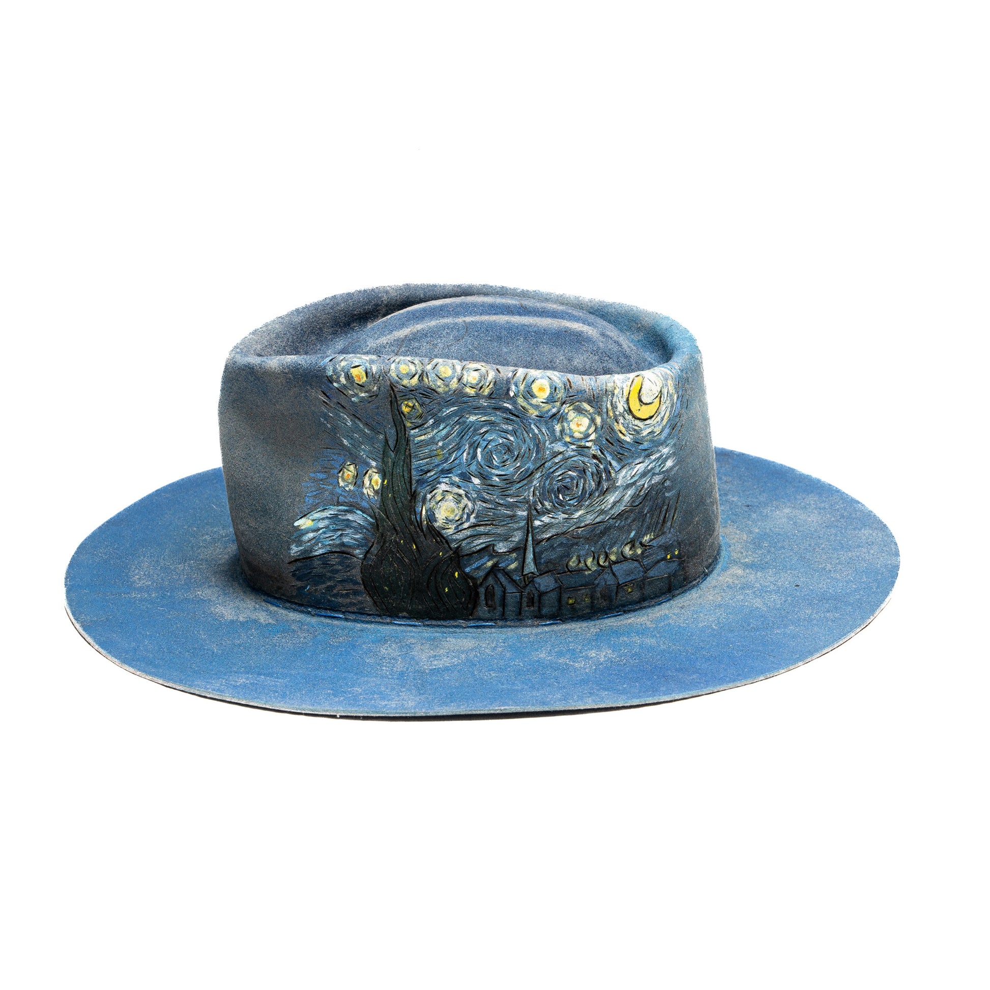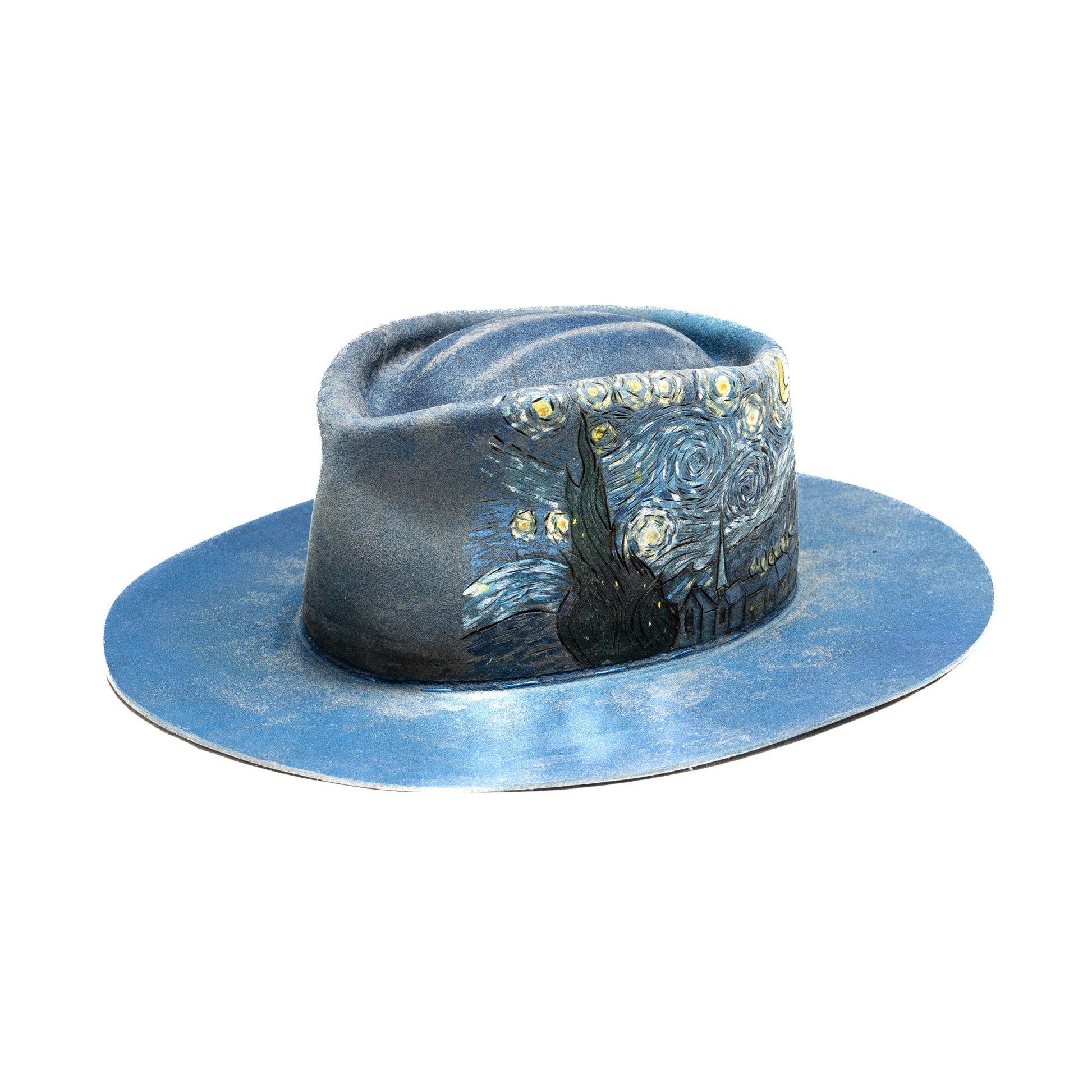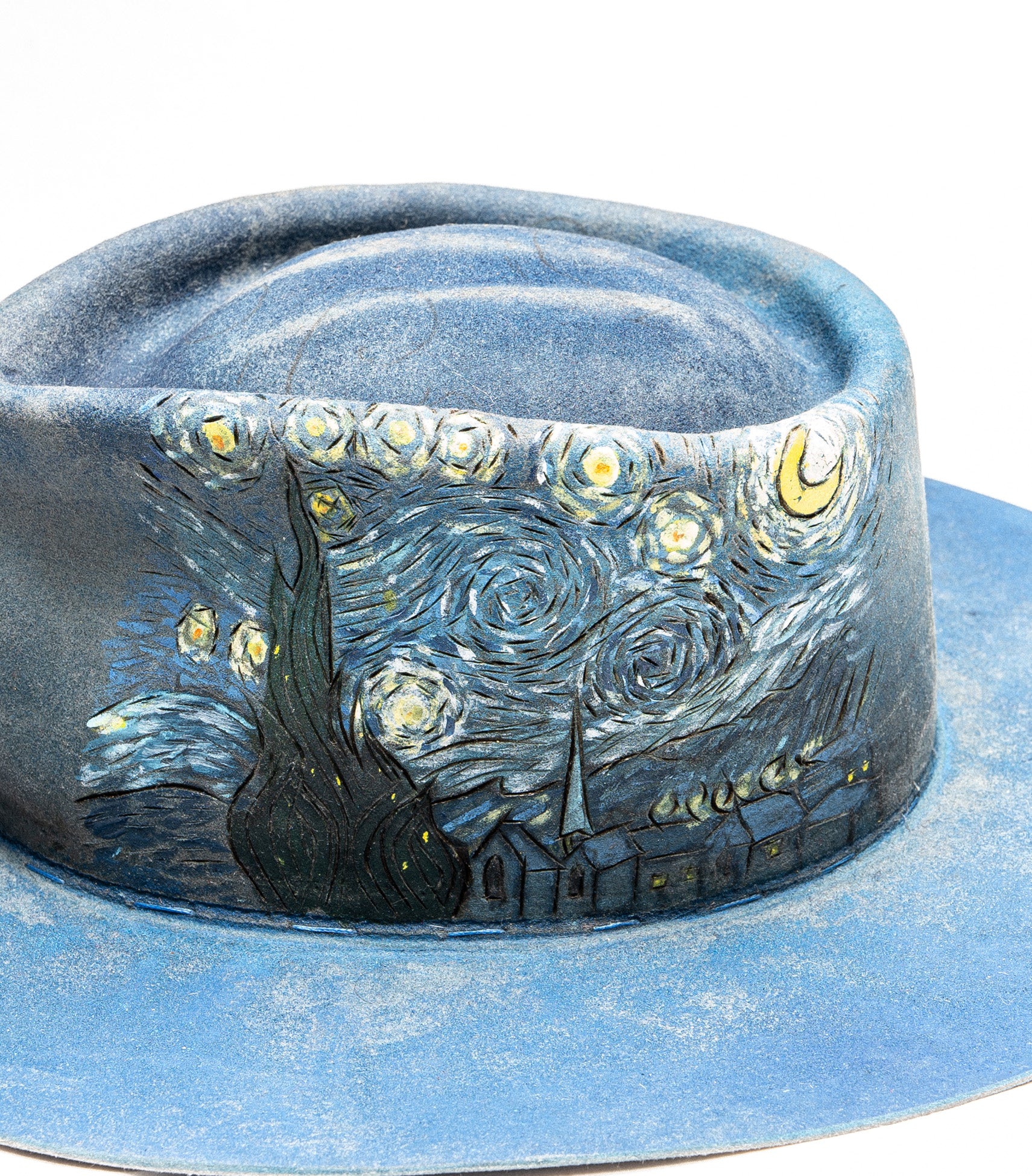 "Esplendor de la noche estrellada: ¡un sombrero personalizado inspirado en la obra maestra de Van Gogh!"