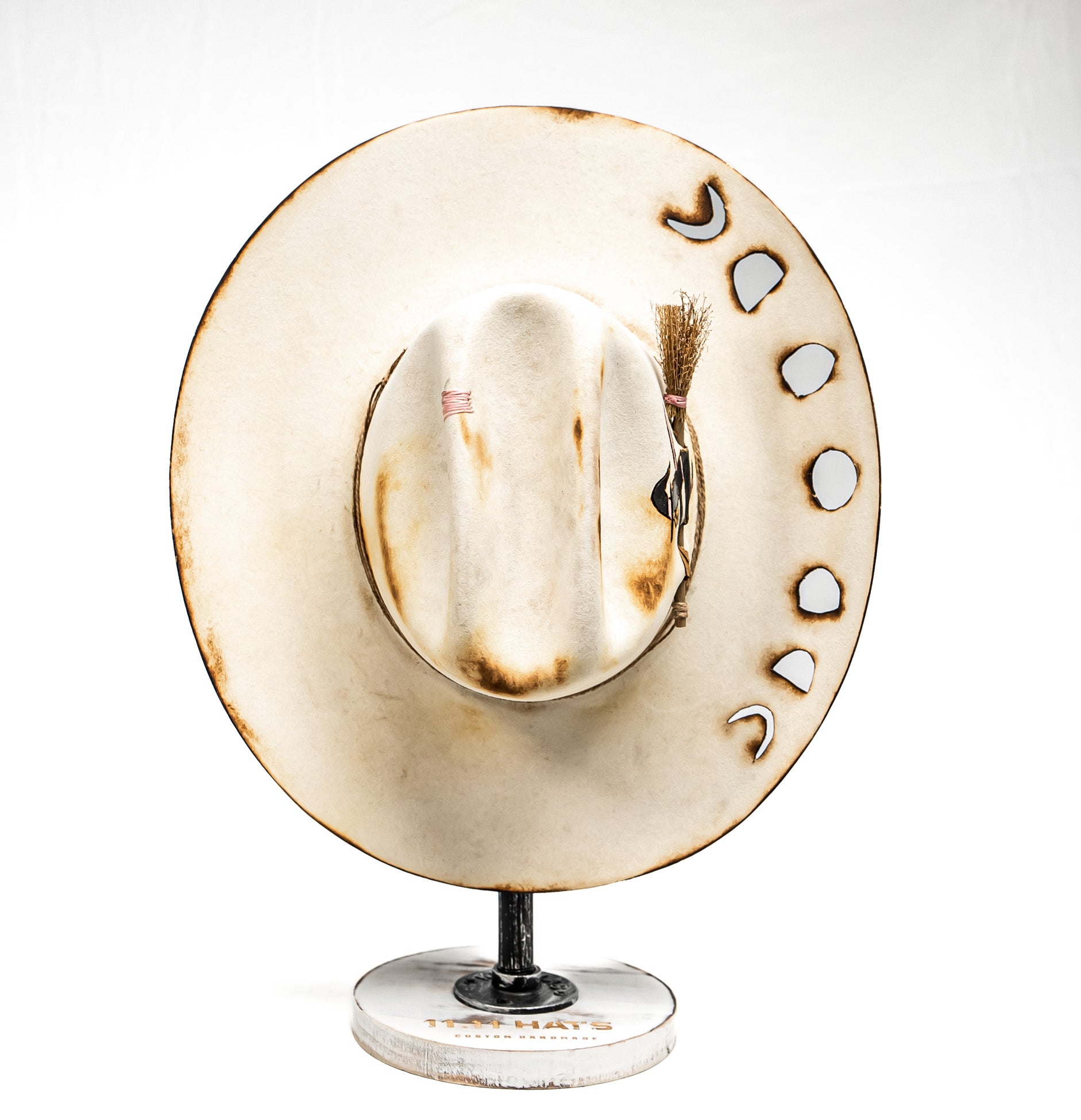 "Sombrero de Bruja y Fases Lunares" es una ilustración cautivadora que captura la mística de la brujería y la danza celestial de la luna”.