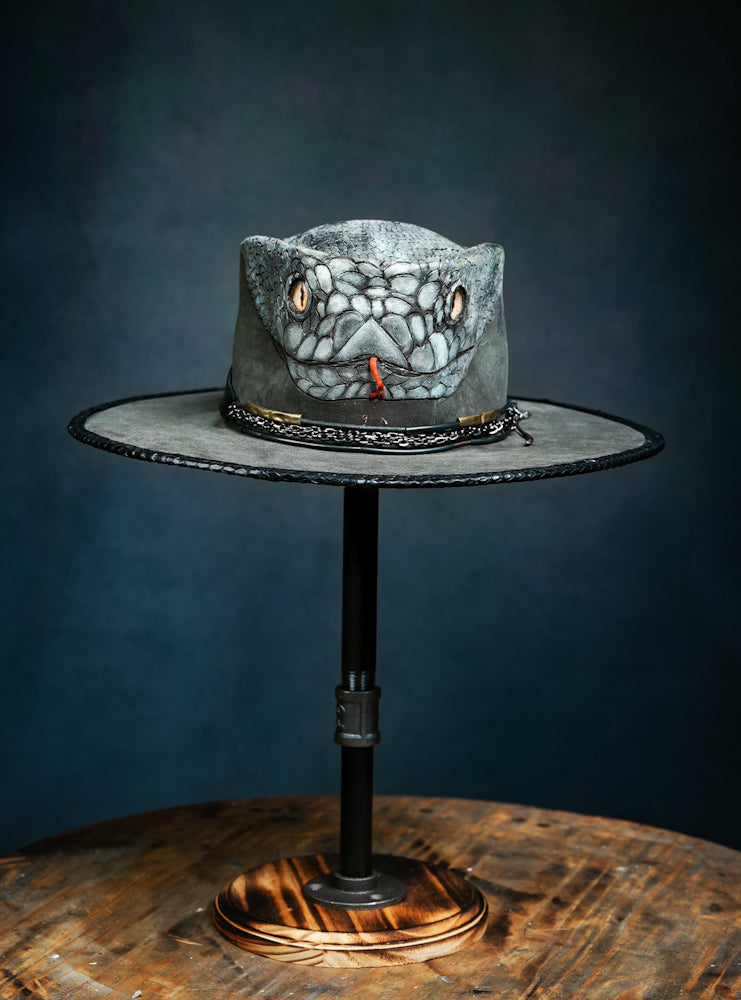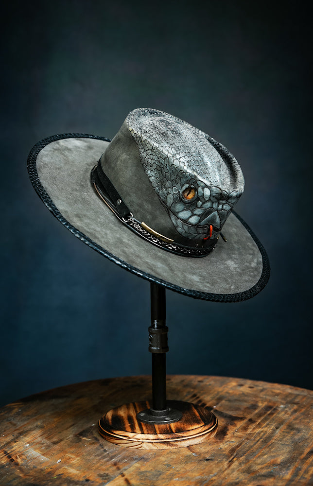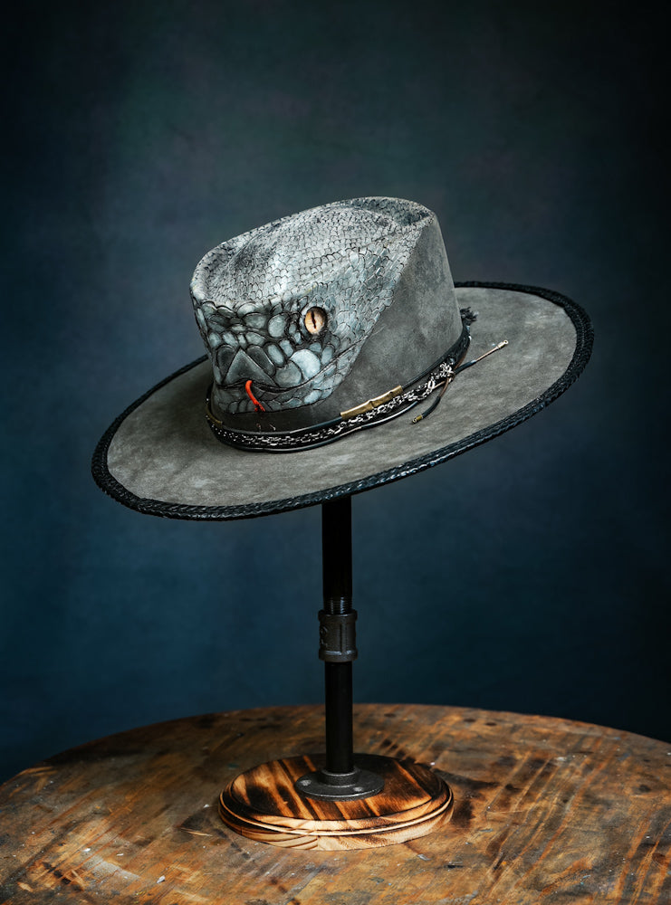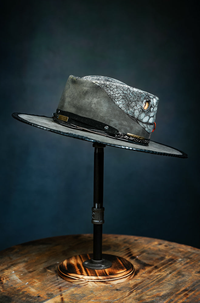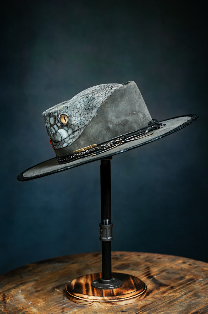 Custom 100x Beaver Felt Hat in Steel Black with Black Mamba Snake art work